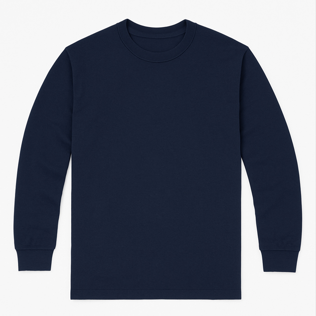 T-20-1 면20수 라운드티 긴팔 네이비