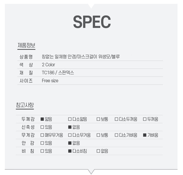 *스판텍스원단은 얼굴에 밀착되어 착용감이 좋으며 이물질 낙하를 방지함